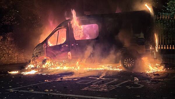 Fireworks launched at gardaí, Garda van set alight, in clash with protesters at Citywest Oct 22, 25 News