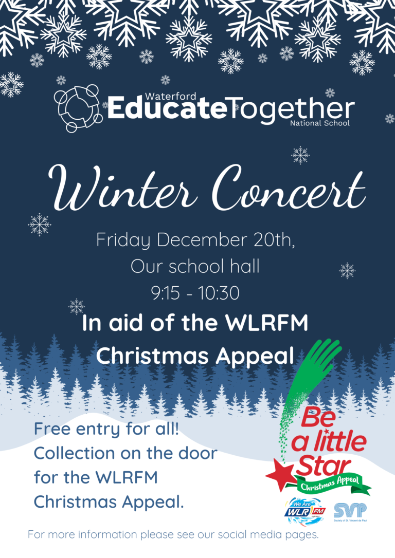 A massive thank you to all the students, teachers and parents of Waterford’s Educate Together, their Winter Concert raised €750 for the WLR Christmas Appeal in Aid of St Vincent De Paul.
