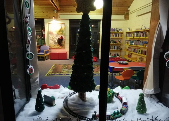 Portlaw Library’s Crochet and Knitting group on their beautiful Christmas window