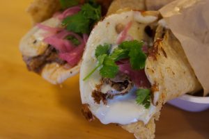It contains; Slow Roast Pork with crispy Bacon, homemade Apple Sauce, caramelized onion and melted Brie, and they will be serving it with homemade apple slaw.