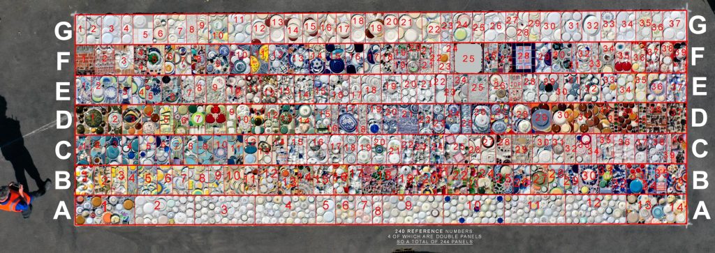 The project transforms thousands of surplus and sentimental crockery items into environmental art. Local people donated every piece used in the mosaic. Each item carries its own story and history.
