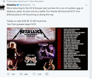 Breaking: Metallica to headline Slane for the first time on June 8th 2019