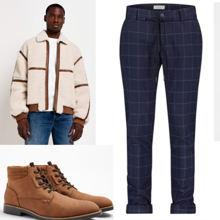 This outfit avoids the traditional Christmas colours of red and green, but the fleese jacket makes it wonderful Winter attire.