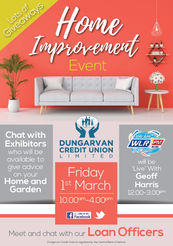 Dungarvan Credit Union is holding a Home Improvement Event this Friday March 1st, to help you make it a reality.