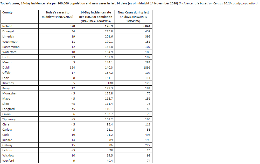 The Health Protection Surveillance Centre has today been notified of one additional death related to COVID-19 and 378 new cases.