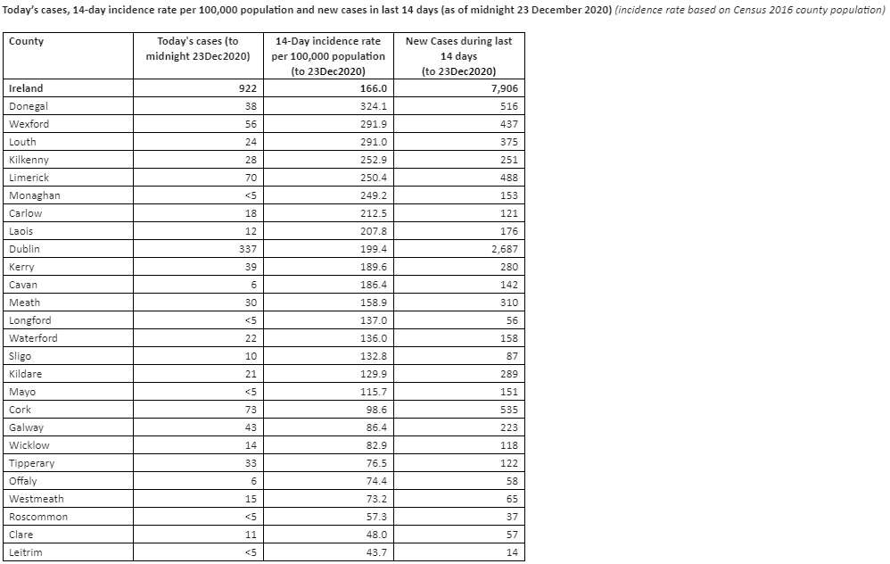 There have been 922 new cases of Covid-19 reported in the last 24 hours while there have been 8 further deaths.