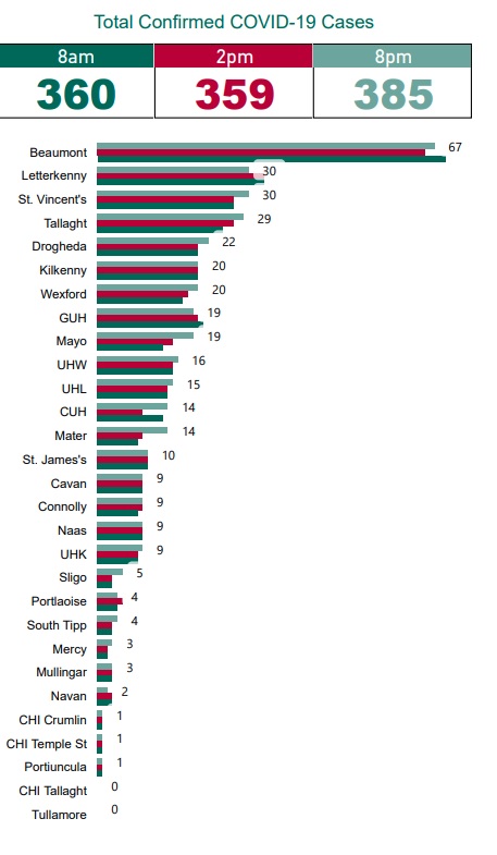 There were 20 each in both St Lukes, Kilkenny and Wexford General Hospital, 16 in Waterford and 4 at South Tipperary General Hospital.