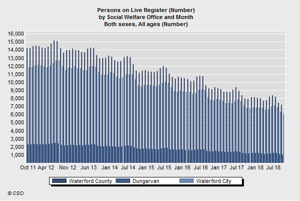 The live register in Waterford remains below 8,000 for the second month in a row.