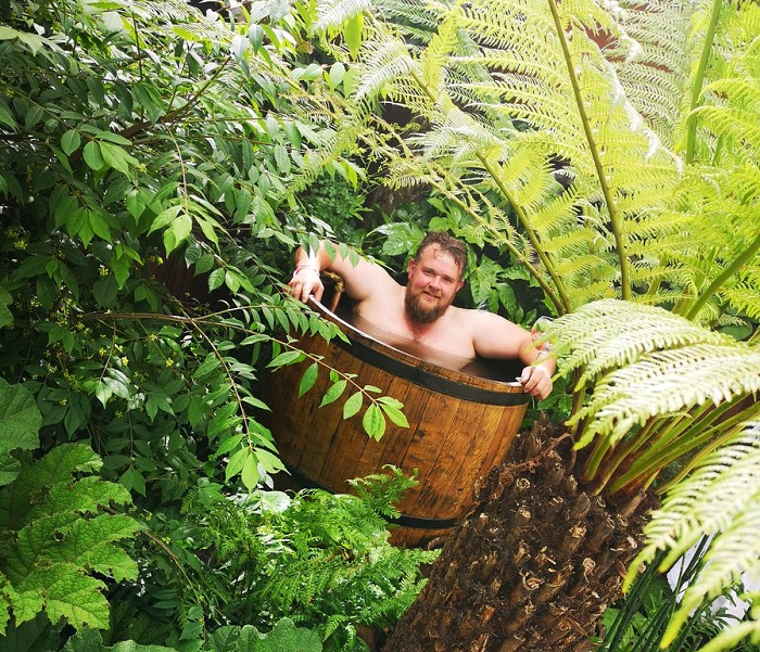 There are 3 areas – a social entertaining area, a small bar and a secluded hot tub area converted for an old whiskey barrell.