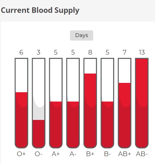 O negative donors in particular are needed with supplies of that blood group down to just three days.