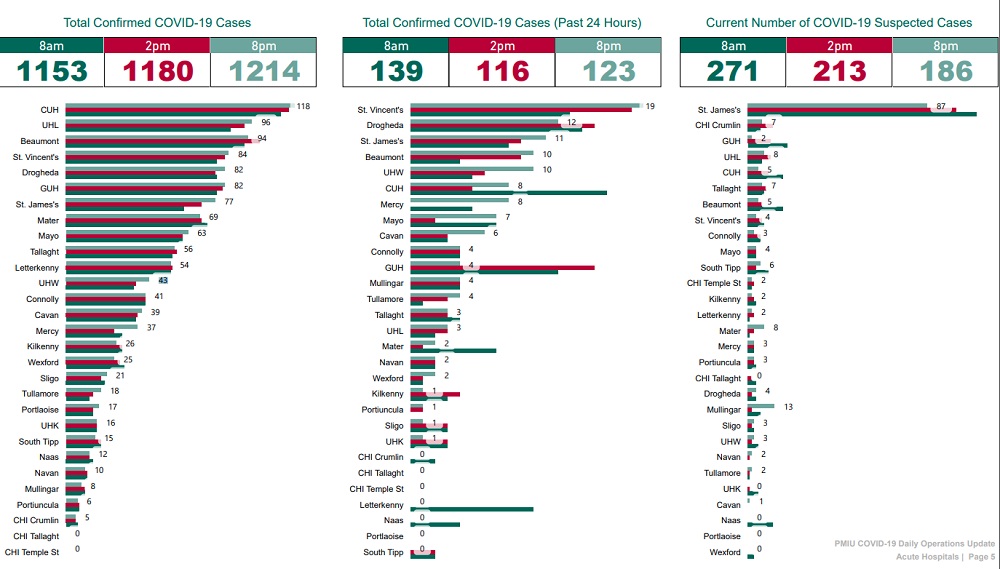 Cork University Hospital had the highest number of cases with 118, followed by Limerick with 96.