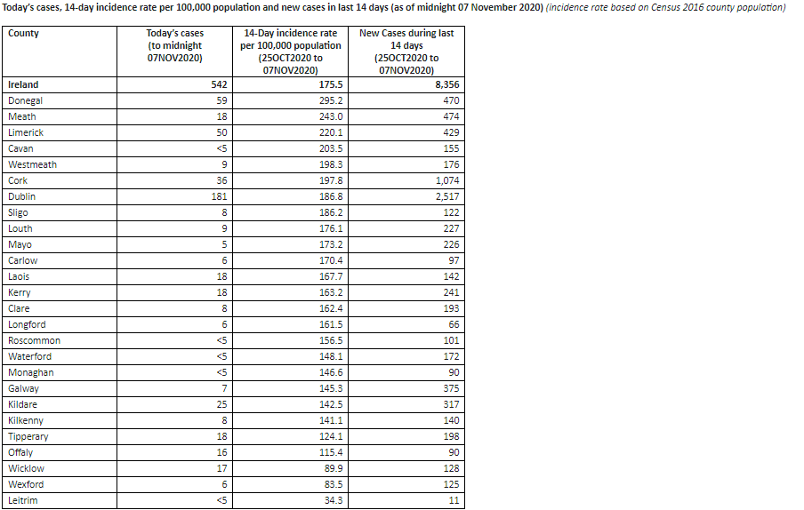 The Health Protection Surveillance Centre has today been notified of 2 additional deaths related to COVID-19 and 542 confirmed cases.