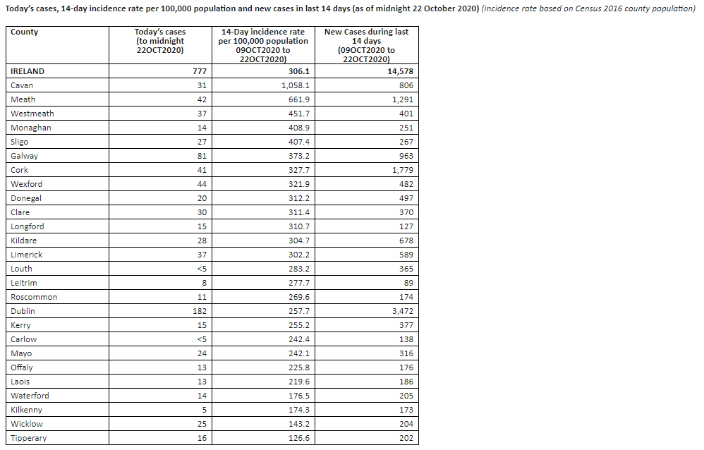 Nationwide there are 777 confirmed cases included in today’s figures, 14 of the cases are in Waterford.