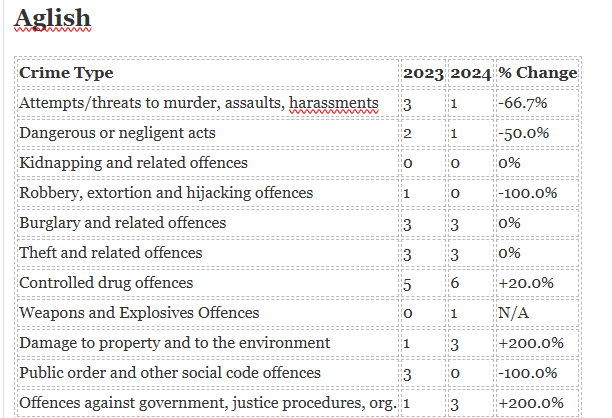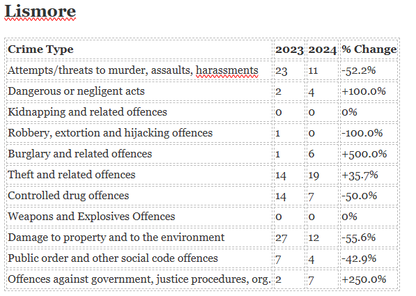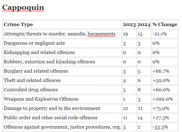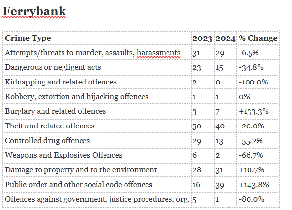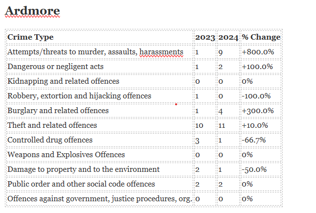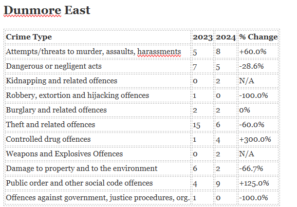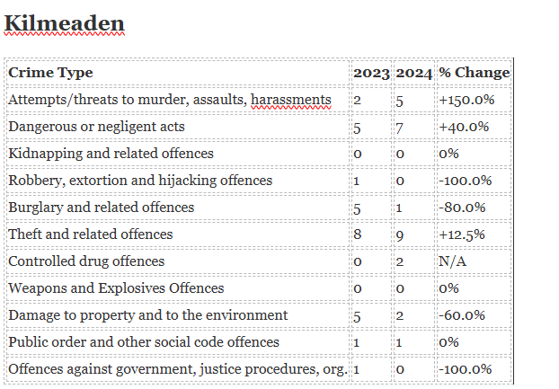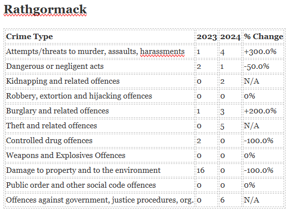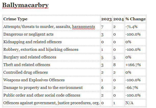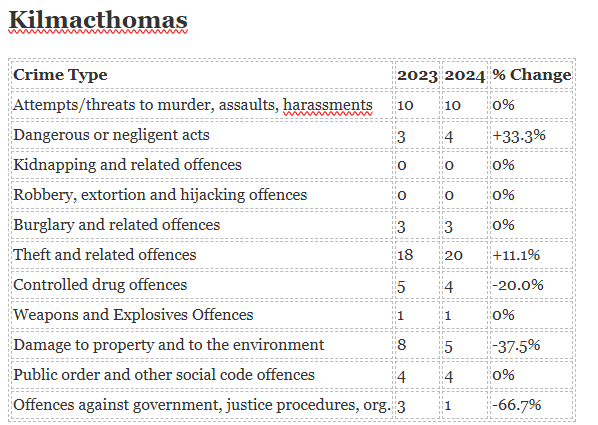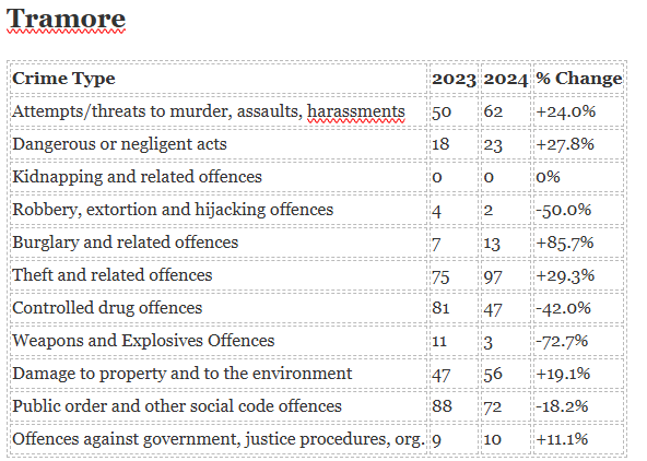 The biggest increase in crime has been seen in Ardmore while the biggest decrease is in Portlaw.