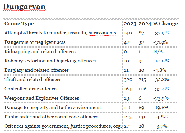 There were also significant decreases in crime in Dungarvan, Ballymacarbry and Tallow – while the rate has risen in Passage, Cappoquin and An Rinn.