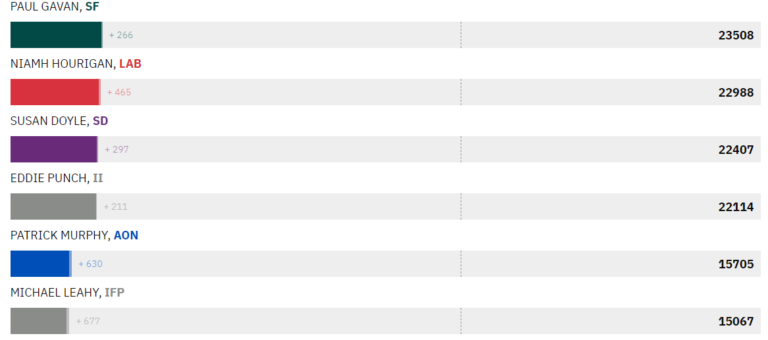 Fine Gael’s Regina Doherty ended up topping the poll ahead of Fianna Fail’s Chris Andrews, Sinn Fein’s Lynn Boylan and Aodhan O’Riordain of Labour.