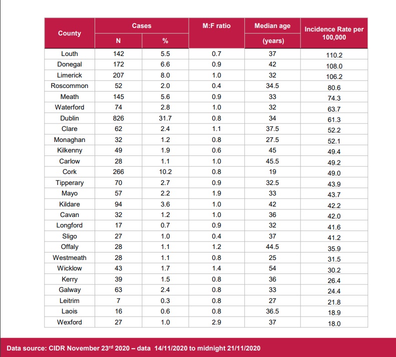 Louth, Donegal, Limerick, Roscommon and Meath all have higher incidence rates than Waterford.