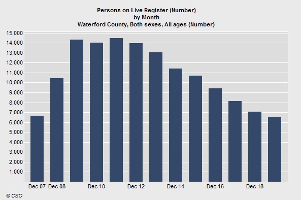 There was a slight increase in the live register in Waterford at the end of 2019.