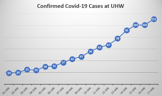 UHW is one of 10 acute hospitals across the country with more than 100 patients.