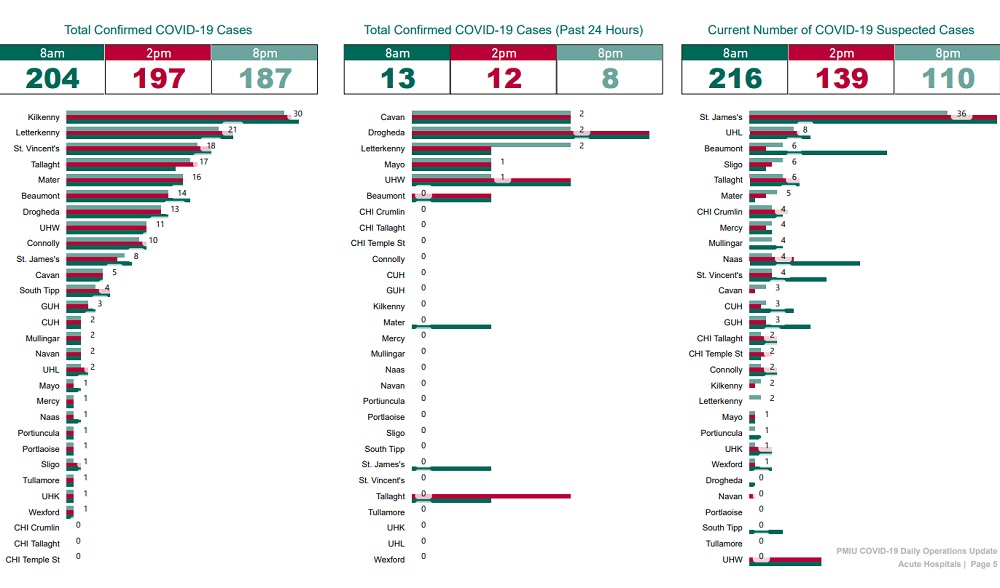 St Luke’s in Kilkenny continues to have the highest number of positive cases with 30.