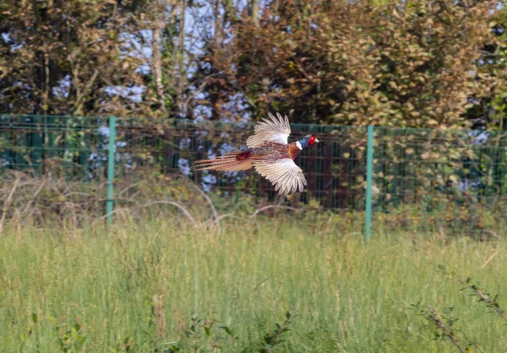A pheasant in flight at the Waterford Wastewater Treatment Plant site
