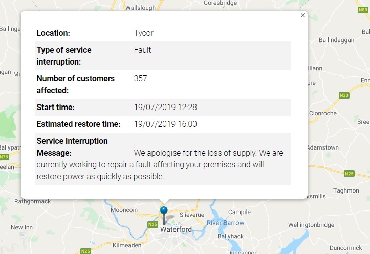 Update 2.10pm: Power has been restored to all customers in Waterford City.