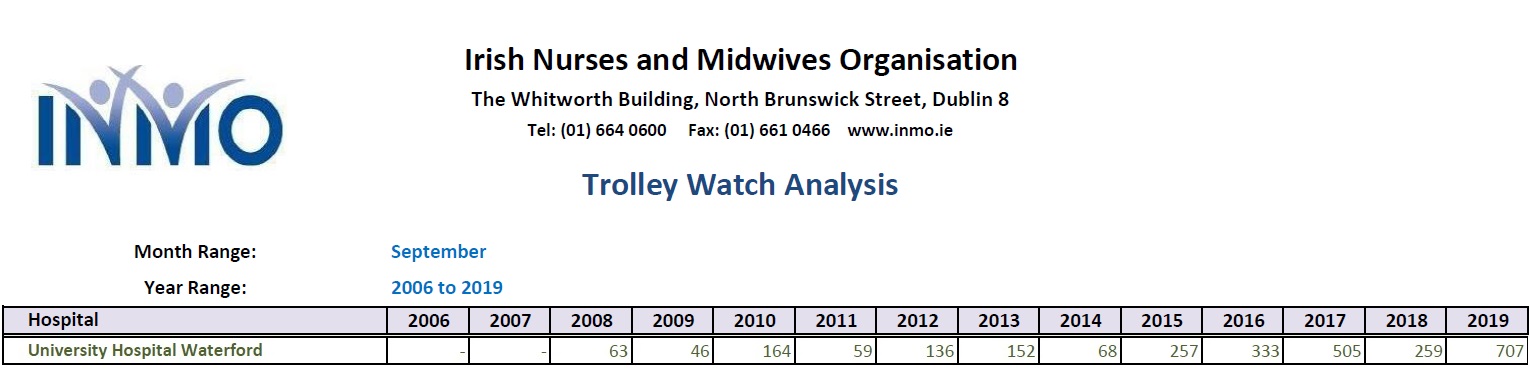 It’s the highest ever monthly figure for Waterford and is 172% higher than September of last year when 259 people were on trolleys.