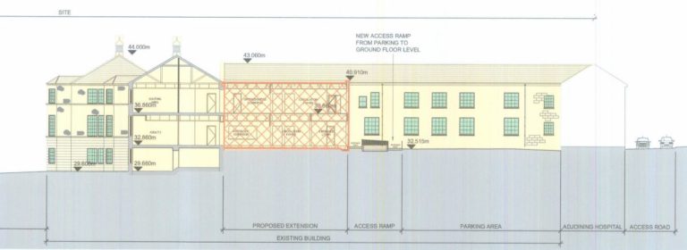 It is understood works will comprise the refurbishment of part of the old disused St. Otteran’s hospital ward areas to facilitate the construction of a new Audiology Unit on the ground floor (934m2) which will include four audiology acoustic testing booths, treatment areas, and staff facilities.