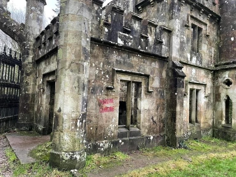 It’s understood to have happened in the last couple of days when someone graffitied ‘Vaccine Genocide’ in red paint on the side of one of the historic structures.