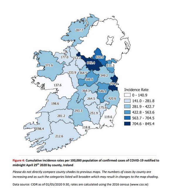 Wexford, which previously had the lowest rate, now has 119.6 cases per 100,000.