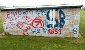 Damage was caused to the dugout at the GAA grounds, while the soccer club’s dugout was sprayed with graffiti.