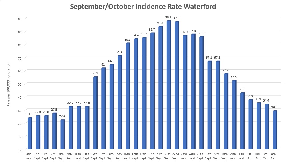 Waterford accounts for around 15% of cases in the region, in previous weeks it was more than half.