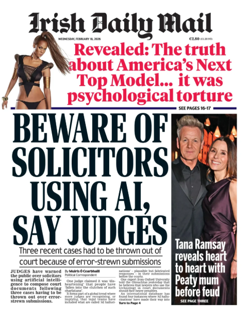 The Irish Daily Mail reports judges' warnings over solicitors using AI to compose legal submissions