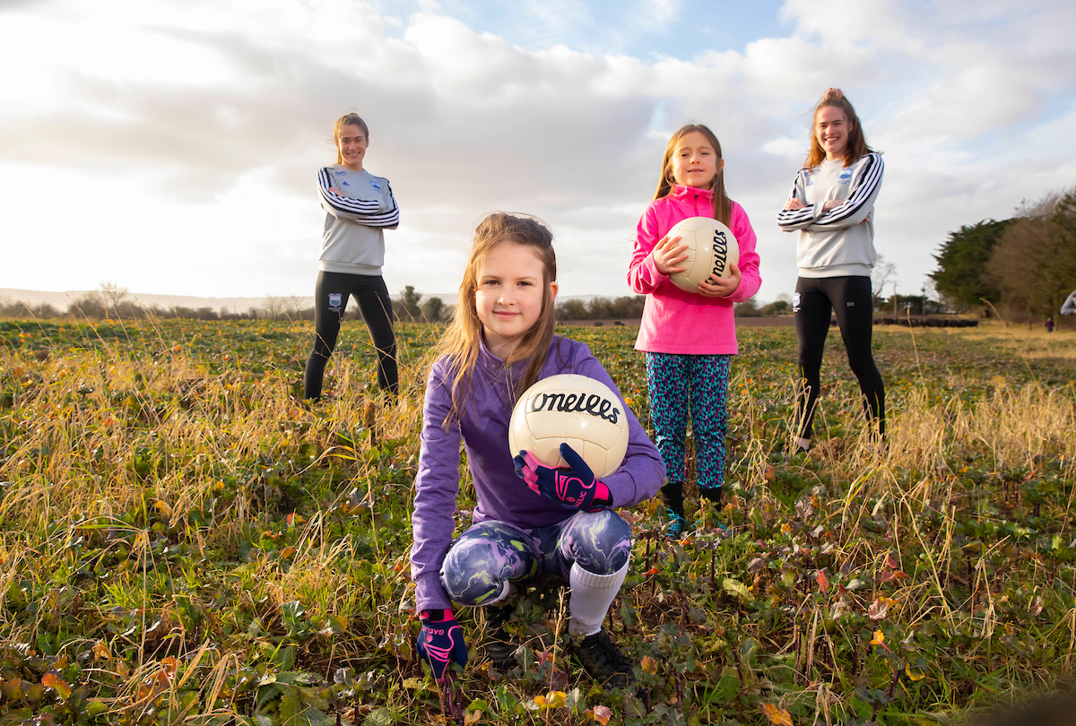 Pictured at the new WLGFA site are young players Ellie O’Connor, Elsie May Shaw with sisters and Waterford Ladies senior county players Aoife and Emma Murray