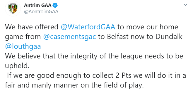 Earlier this week, WLR reported that there was concern amongst the Waterford football playing group about their Allianz Football League meeting with Antrim set for this Saturday.