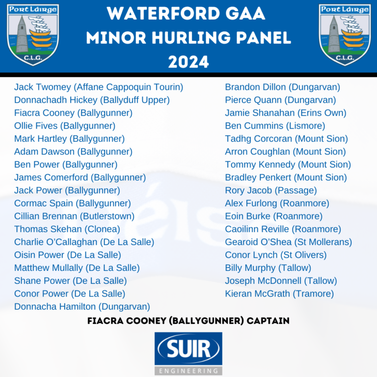 The Waterford Minor Hurling Manager James O’Connor and his management team have released their 2024 panel.