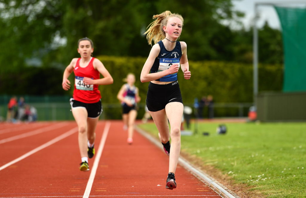21 May 2022; Charlotte Carpendale of Abbey Communtiy College, Waterford, competing in the junior girls 1500m