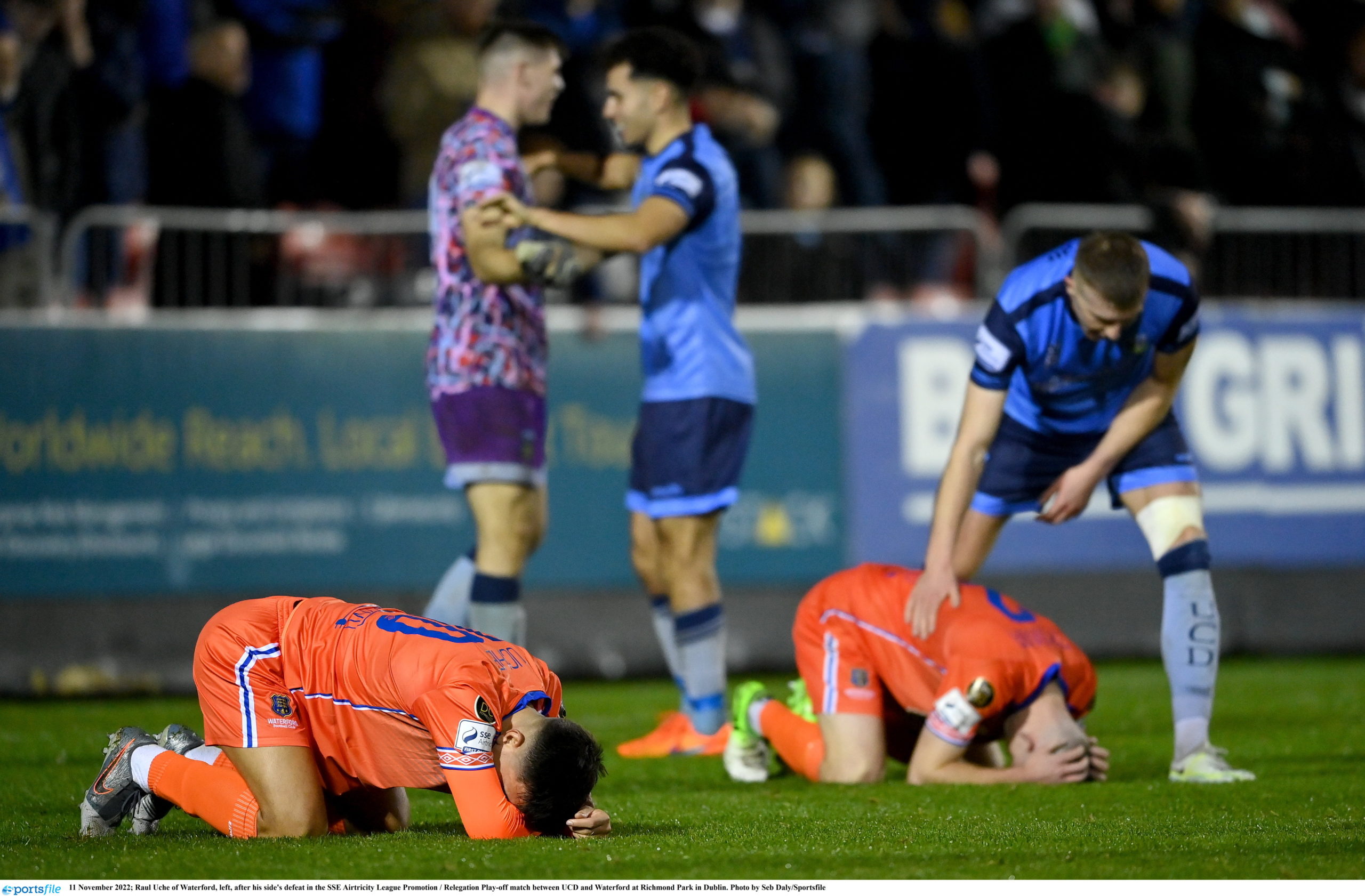 A late penalty for the Blues saw Junior Quitirna stand up to the spot but he sent it over the crossbar and out of play. As the final kick of the game, the referee blew the whistle to the joy of the UCD supporters.
