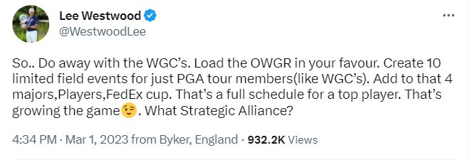 Lee Westwood, who became one of the figureheads of the LIV exodus has pointed the finger at the move to signal the lack of parity between LIVe and the PGA Tour when it comes to world rankings points.