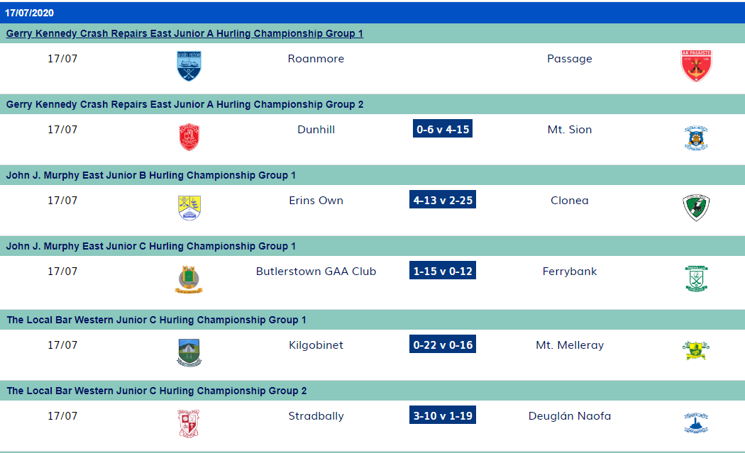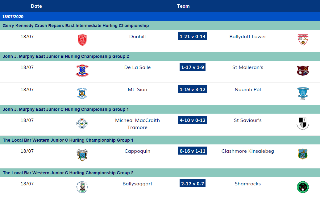 All Fixtures taken from Waterford GAA Website (https://www.waterfordgaa.ie/fixtures/)