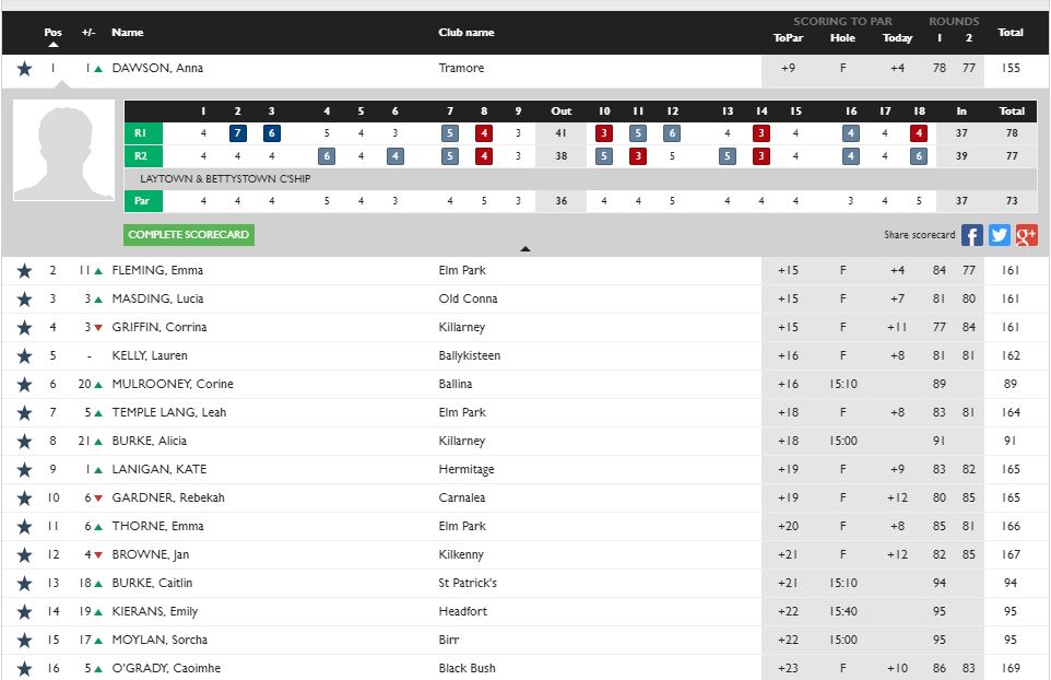 Waterford’s Anna Dawson tops the leader board after the first two qualifying rounds at the Leinster Girls Championship.
