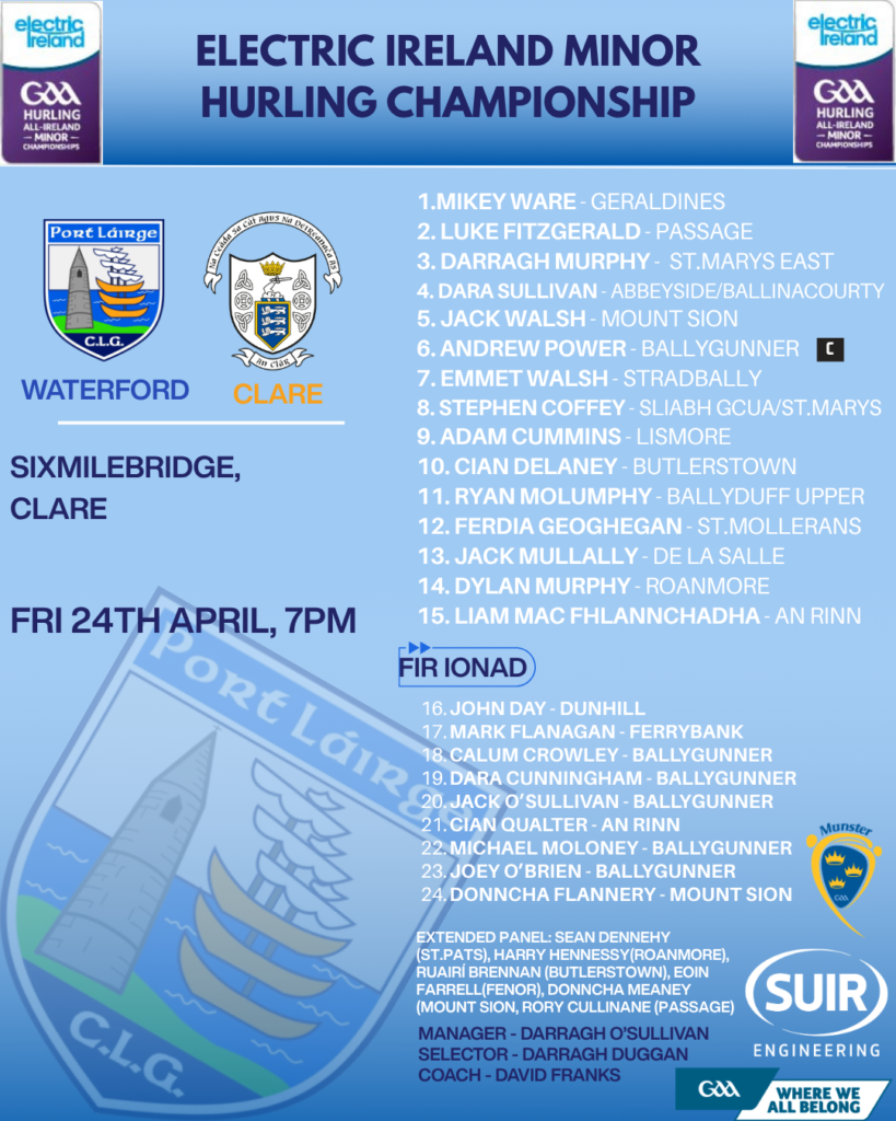 Waterford minor hurling manager Darragh O’Sullivan and his management team have named their panel ahead of Round 3 of the Electric Ireland Munster Minor Hurling Championship.