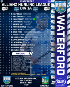 Waterford senior hurling team named for League clash with Limerick