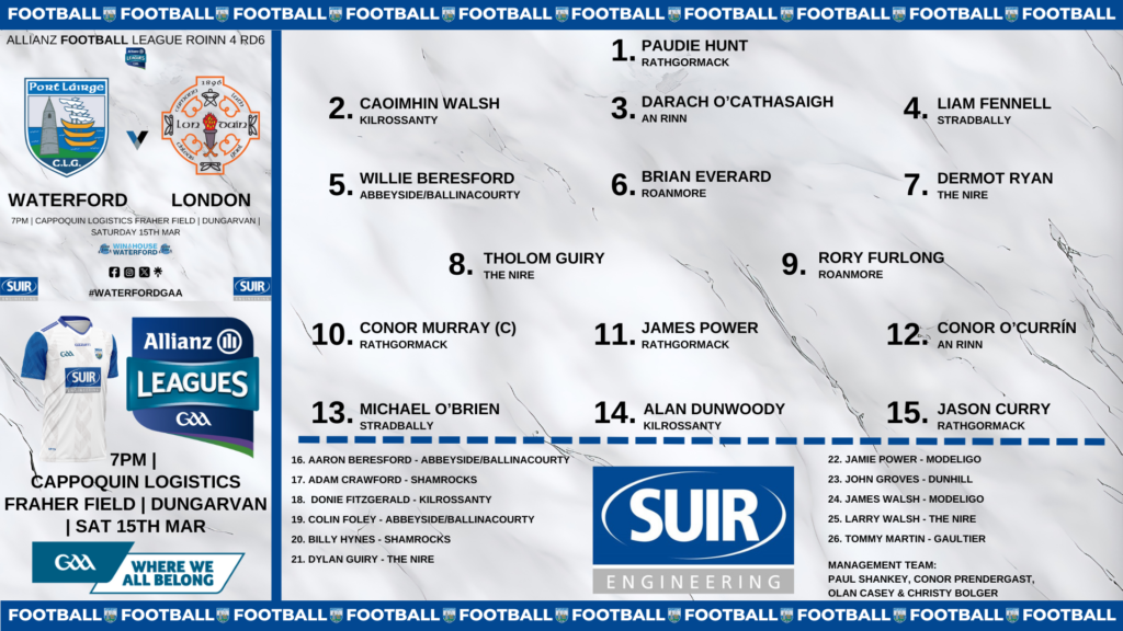 The Déise face off against the Exiles on Saturday, 15th March at Cappoquin Logistics Fraher Field at 7pm.