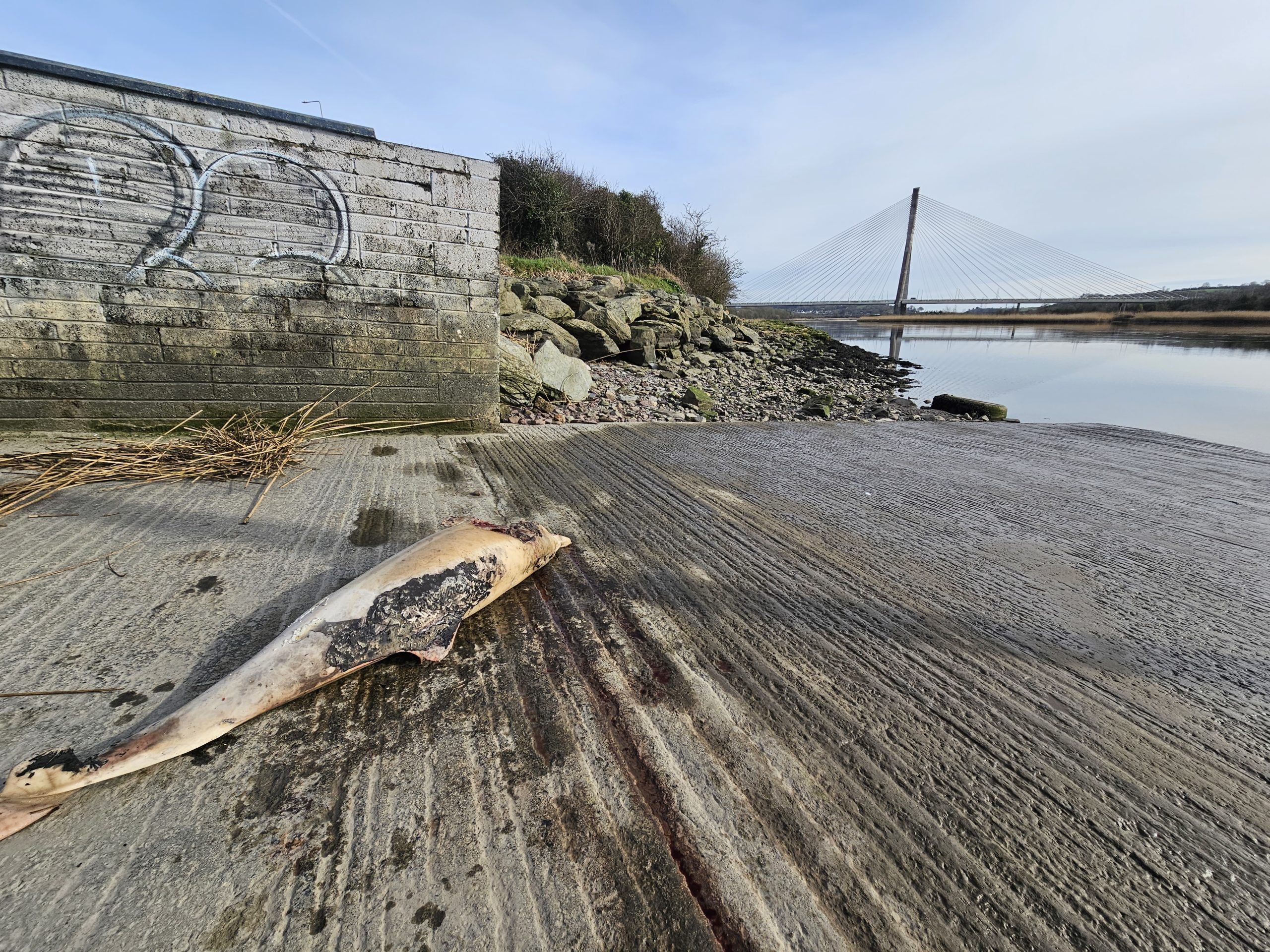 Large dolphin found washed up by River Suir