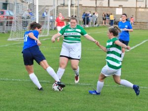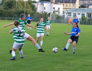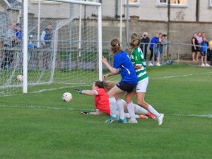 The Carrick strike force both went close at the beginning of the second half but neither could find the net. The Blues attempted to turn the screw and Kaeisha Tobin’s corner came crashing back off the upright. Ciara Hurley, who didn’t put a foot wrong all evening, then played a lovely floated ball to Delahunty but she couldn’t apply the finishing touch.